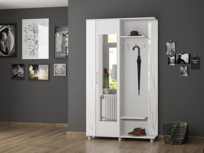 Прихожая Ирма - модная, с необычным завораживающим дизайном, отличный вариант для малогабаритных квартир. Модель включает в себя вместительный шкаф со штангой, полку для мелочей, на которой можно разместить перчатки, кошельки, и открытую секцию с крючками под одежду, зонты и ключи. Принимайте гостей с удовольствием. Ирма выполнена в классическом стиле и трех декорах на выбор: венге/дуб молочный, ясень шимо/дуб сонома, белый.