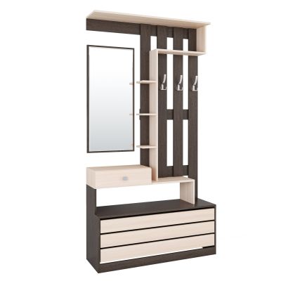 Если пространство Вашей прихожей не позволяет расположить много мебели, советуем обратить внимание на секцию из коллекции Ямайка. Модуль уникален по своей функциональности и содержит нишу для обуви с откидной дверцей, выдвижной ящик для мелочей, открытую вешалку с 3-мя крючками, полку-антресоль, набор открытых полок и зеркало. Ширина в 110 см позволит Вам расположить секцию даже в малогабаритной прихожей.