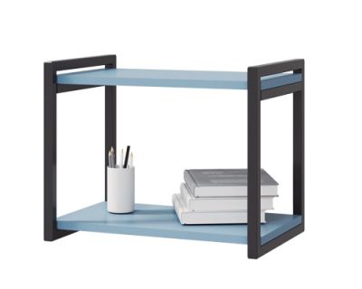 Дополнить интерьер комнаты и визуально облегчить мебельный гарнитур легко с полкой из коллекции Стич. За счет открытого типа полка кажется невесомой. Серо-голубые полки и черный металлический каркас смотрятся гармонично. Модуль - идеальное место для хранения книг, цветов, предметов декора.